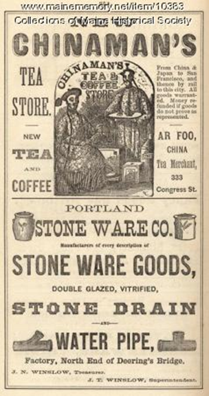 《波特兰每日新闻》(Portland Daily Press)1871年9月12日报道称,Ar Foo Fong在自己位于国会街333号的茶店门前庆祝共和党胜选。该报绘声绘色地描述道:昨天选举中最“激动人心”的一幕,是那位“卑劣不堪”的中国茶商、劳工党人之敌——Ar Foo的表现。当选举结果开始陆续公布时, 有人目睹他在店门前独自跳起了一种“民族独舞”;他面部表情因充满仇恨而扭曲变形,流露出一种恶魔般的狂喜之色。他动作迅捷,以至于脑后的那条“野蛮”辫子都因惯性而横向飞起;脚上那双木屐踩在砖地上,发出一种令人毛骨悚然、宛如地狱般的刺耳声响。一位过路白人战战兢兢地走上前去,试探性地问他是在做什么异教仪式;于是,那位外国来的“异教徒”——其脑后的长辫始终不停地划出圆、椭圆、抛物线及其他种种令人惊愕的几何图形——竟亲切地发出一声蒙古式的嚎叫作为回应:“民众支持我!我要杀光所有美国劳工骑士团!Perham站在我这一边!”
