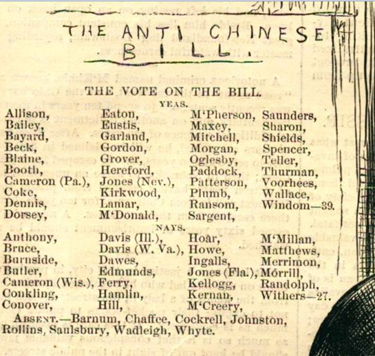 可惜的是,寡不敌众,支持排华的议员是大多数。排华法就这样成了美国第一个移民法,华人也成了美国第一批“非法”移民。