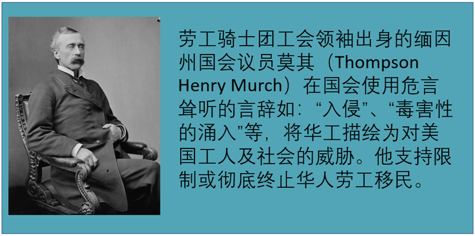 - 缅因州劳工出身的国会议员Murch也高调排华