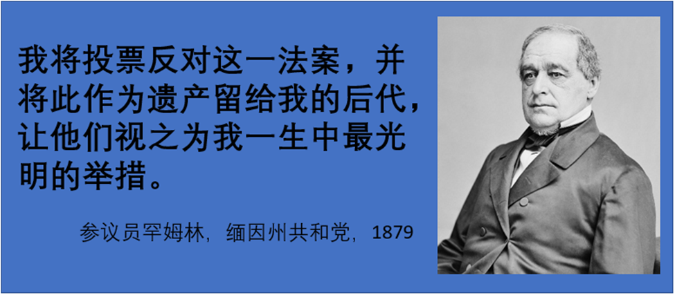 - 正义感寡不敌众,缅因国会议员Hamlin反对排华法!